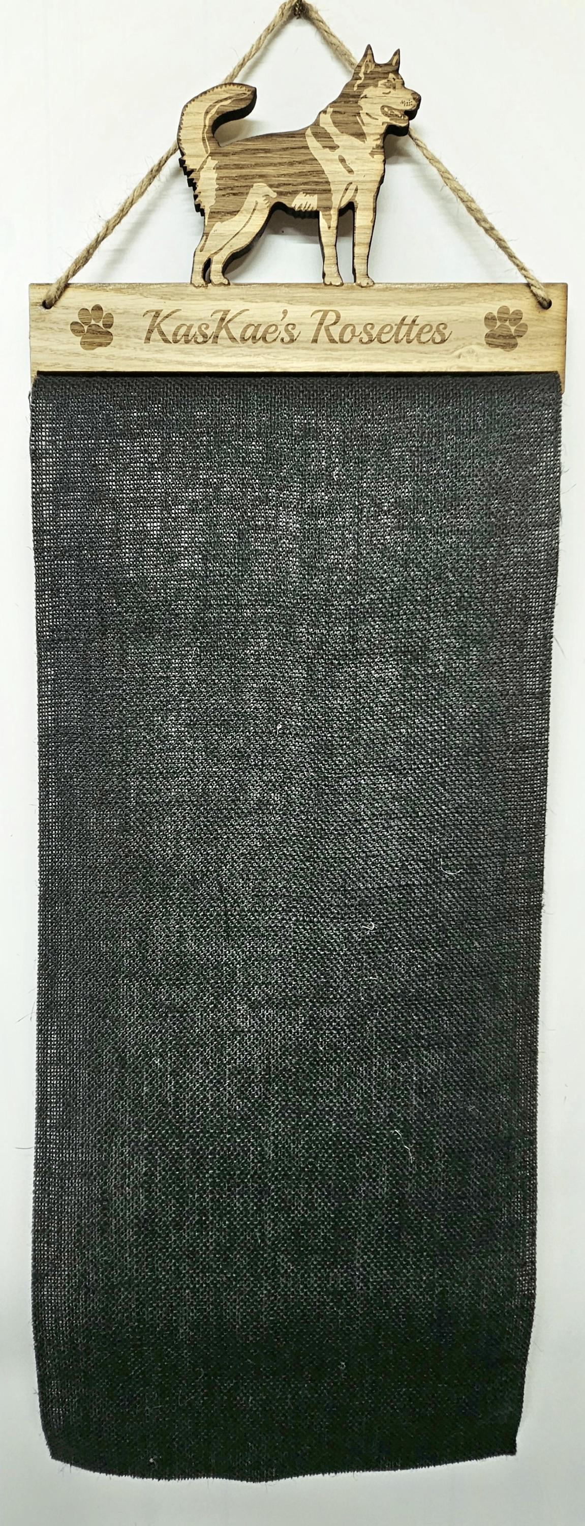 Rosette Holder - Alaskan Malamute - Personalised 6mm Oak Veneer Dog Puppy Rosettes Hanging Gift