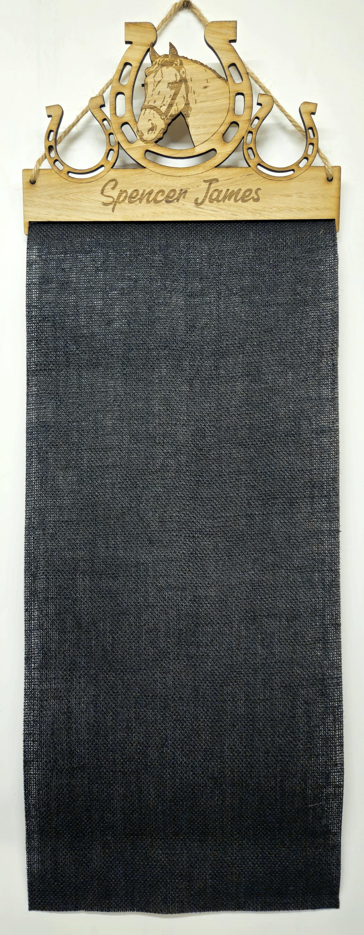 Rosette Holder Horse in Shoe Design: Personalised 6mm Oak Veneer Rosette Hanging Gift