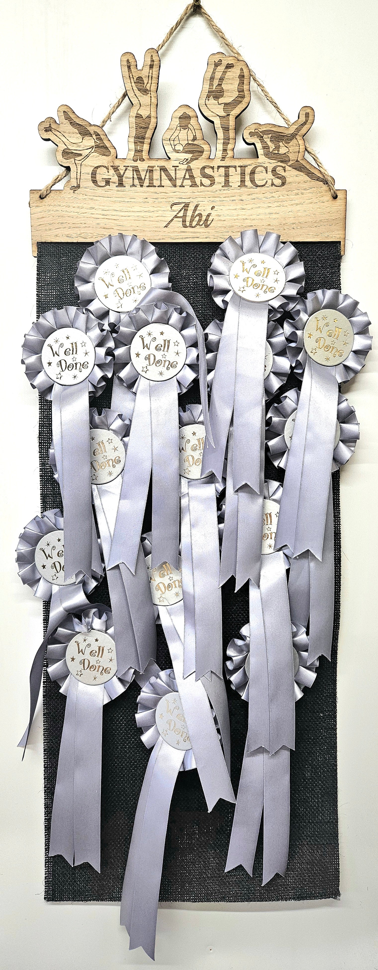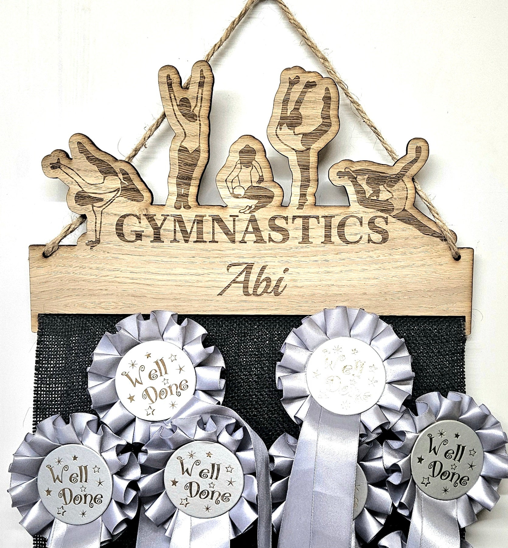 Rosette Holder Gymnastics: Personalised 6mm Oak Veneer MDF Athletics Rosettes Hanging Gift