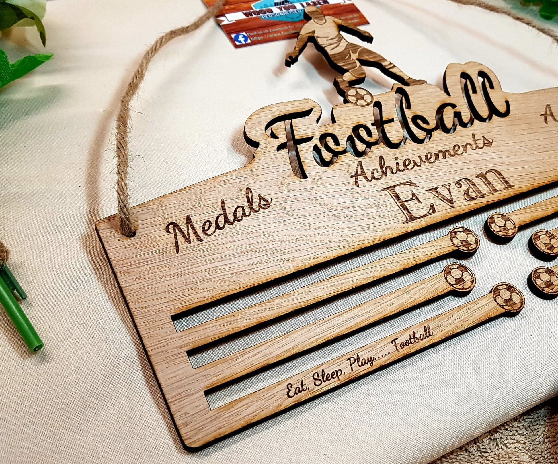 Personalised with a name of your choice.... member of a grassroots football team and have the rights to your club logo? Get in touch and we can include the club badge on your hanger. The price includes all design work, preparation and delivery. If you require a larger order please get in touch and we will meet your needs, discounts may be available All orders will be sent out via Royal Mail 48 hour tracked service.