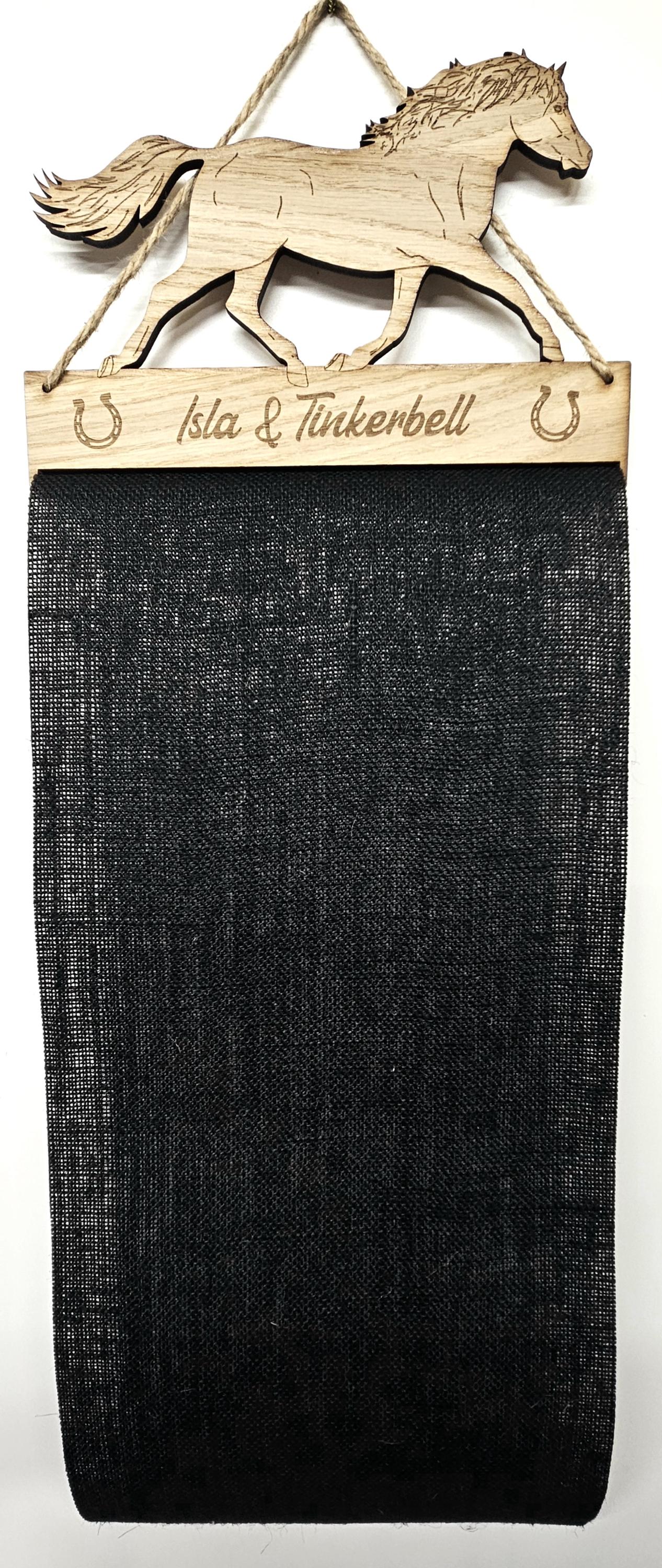 Made from sturdy 6mm oak veneer MDF along with extremely durable black Hessian UPVC Jute cloth, what better way to display your favourite rosettes than with one of our personalised holders.
