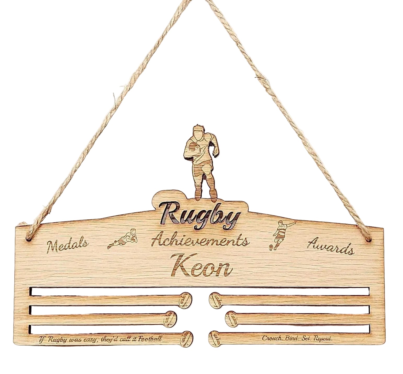 Rugby Medal Holder for Boys Men - 6mm Oak Veneer MDF